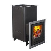 Печь "Мини" для парных с объемом от 5 до 12 куб. метров с конвекционным кожухом для закладки камнем с выносным топочным тоннелем длиной 160 мм (топится из смежного с парной помещения) и панорамным стеклом в дверце.