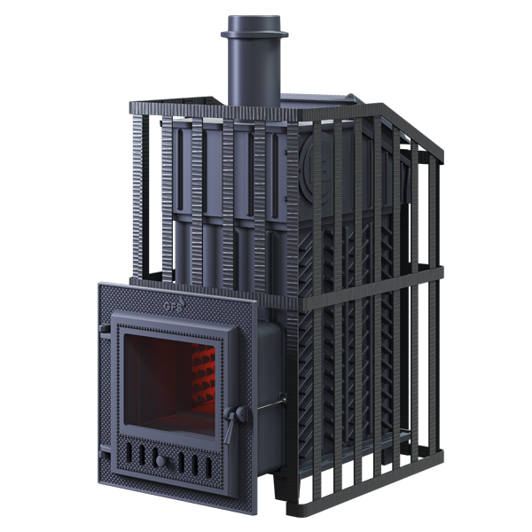 GFS-ЗК в сетке 18(М) Ураган - расширенный комплект печи GFS-ЗК в сетке. Максимально приближенный вариант печи для режимов русской парной, имеющий непосредственно закрытую чугунным коробом каменку, дверцу для пара с ручкой из бука, увеличенную до 50см чугунную стартовую трубу. Печь легко модернизируется до полноценной печи предназначенной для Русской бани путем замены стальной сетки на каменную облицовку без демонтажа дымохода. В комплект входит: печь банная GFS-ЗК 18 (М) короб чугунный Стартовая труба 115х500 дверца GEFEST 350 зольный ящик (конструкционная сталь) герметик "Титан" до 1500С-1 шт гарантийный паспорт (руководство по эксплуатации) стальная кованная сетка
