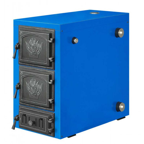 Чугунные дверки с герметичным закрыванием позволят точно управлять режимами работы отопительного котла Олимп при помощи заслонки встроенной в нижнюю дверцу. Простая конструкция теплообменника удобна для очистки с помощью кочерги которая идет в комплекте поставки вместе с совком для выгребания золы.